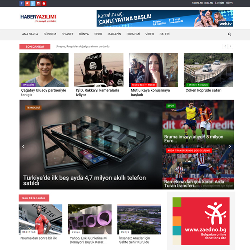 Haber siteniz için sitemizde bulunan temalardan yararlanabilirsiniz, seçtiğiniz temalarda kendi renklerinizi kullanabilirsiniz.